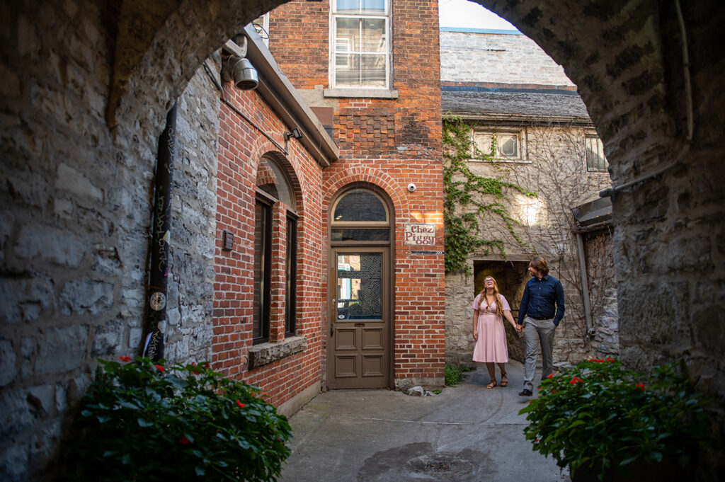 Walking through Kingston’s historic Martello Alley, a curved stone alleyway once used for horse-drawn carriages, feels like you have suddenly stepped back in time. The alley leads to Rochleau Court, an expansive stone courtyard serving as an outdoor patio oasis for Chez Piggy, a beautiful upscale restaurant housed in a two-story limestone building which was once a stable. Sitting on the patio, surrounded by picturesque limestone structures, you almost think you are in Old Quebe City, when in fact, you are in downtown Kingston, Ontario.